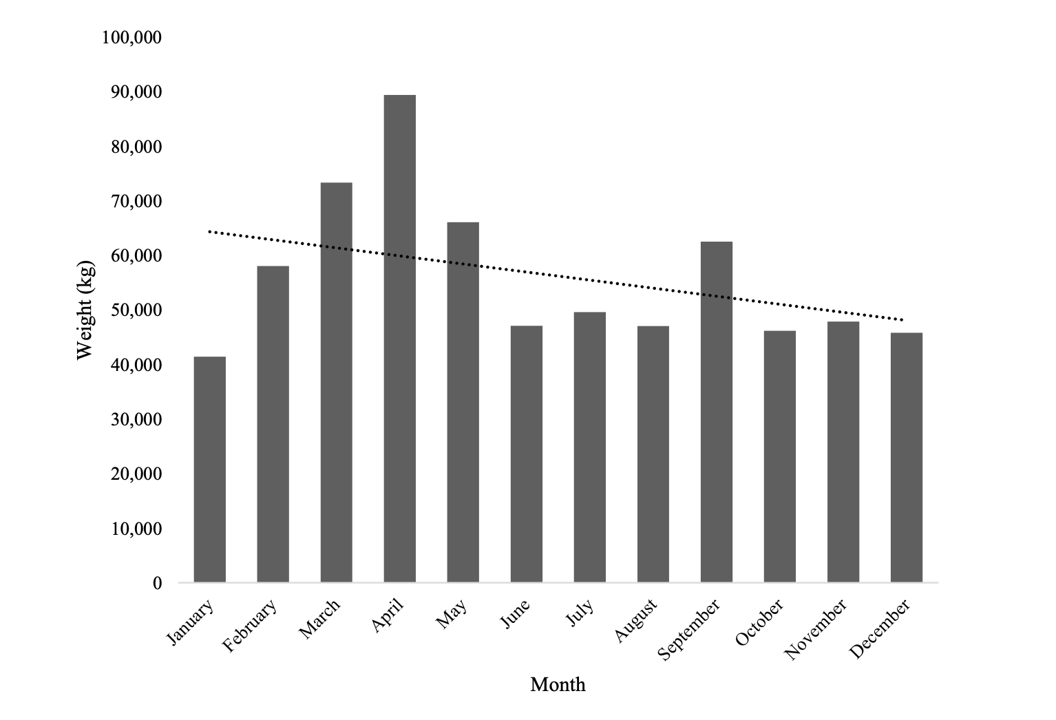 The industry saw its peak in the month of April, with 89,392 kg being landed.