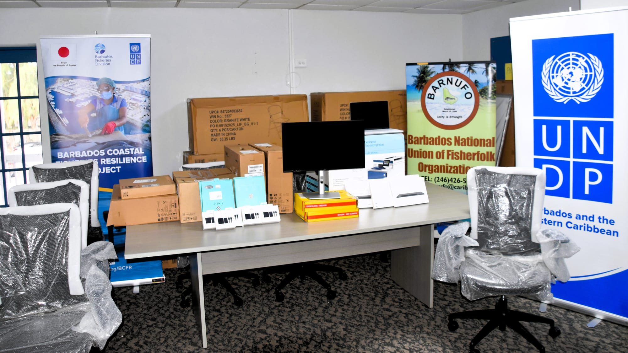 Bridgetown, BARBADOS | 20 April 2026 — The United Nations Development Programme (UNDP), through the Barbados Coastal Fisheries Resilience Project, made a final handover of Information and Communications Technology (ICT) equipment and office furniture valued at approximately US$37,000 to the Barbados National Union of Fisherfolk Organisations (BARNUFO) on 30 March as part of ongoing efforts to strengthen operational capacity in the fishing sector.