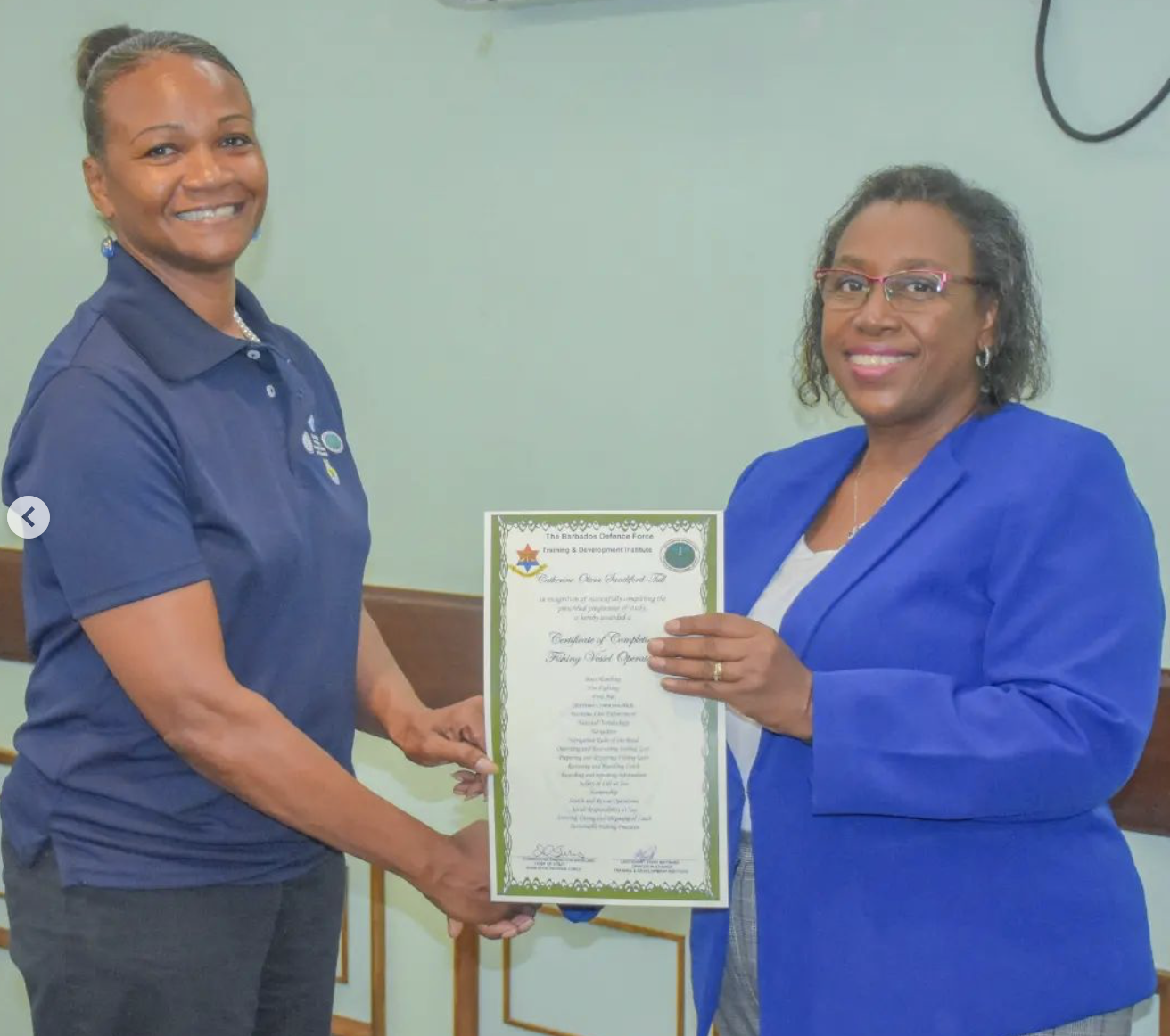 The two-part course began on 25 September 2023 and ended on 15 December 2024 and sought to enhance the knowledge and skills of the local fisherfolk community. There were 23 students from the Fisheries Division and the Barbados Coast Guard. Topics included Fisheries Regulations, Safety of Life at Sea, Boat Handling and Rules of the Road.