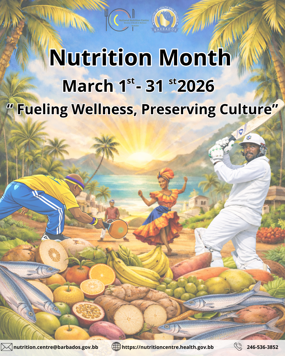 The National Nutrition Centre encourages Barbadians to grow and consume a wide variety of traditional foods, prepared in ways that preserve their natural nutritional value and combined to ensure balanced, nutrient-rich meals. Many dishes prepared by our fore-parents remain highly relevant today for promoting good health and providing affordable nutrition. Equally important is the role physical activity once played in daily life. While we welcome modern advancements, we must preserve the health-promoting elements of our culture by maintaining active lifestyles. As we observe this period of heightened focus on nutrition, we are reminded of the value of our traditional foods and the enduring importance of physical activity in supporting the health and wellbeing of all Barbadians.