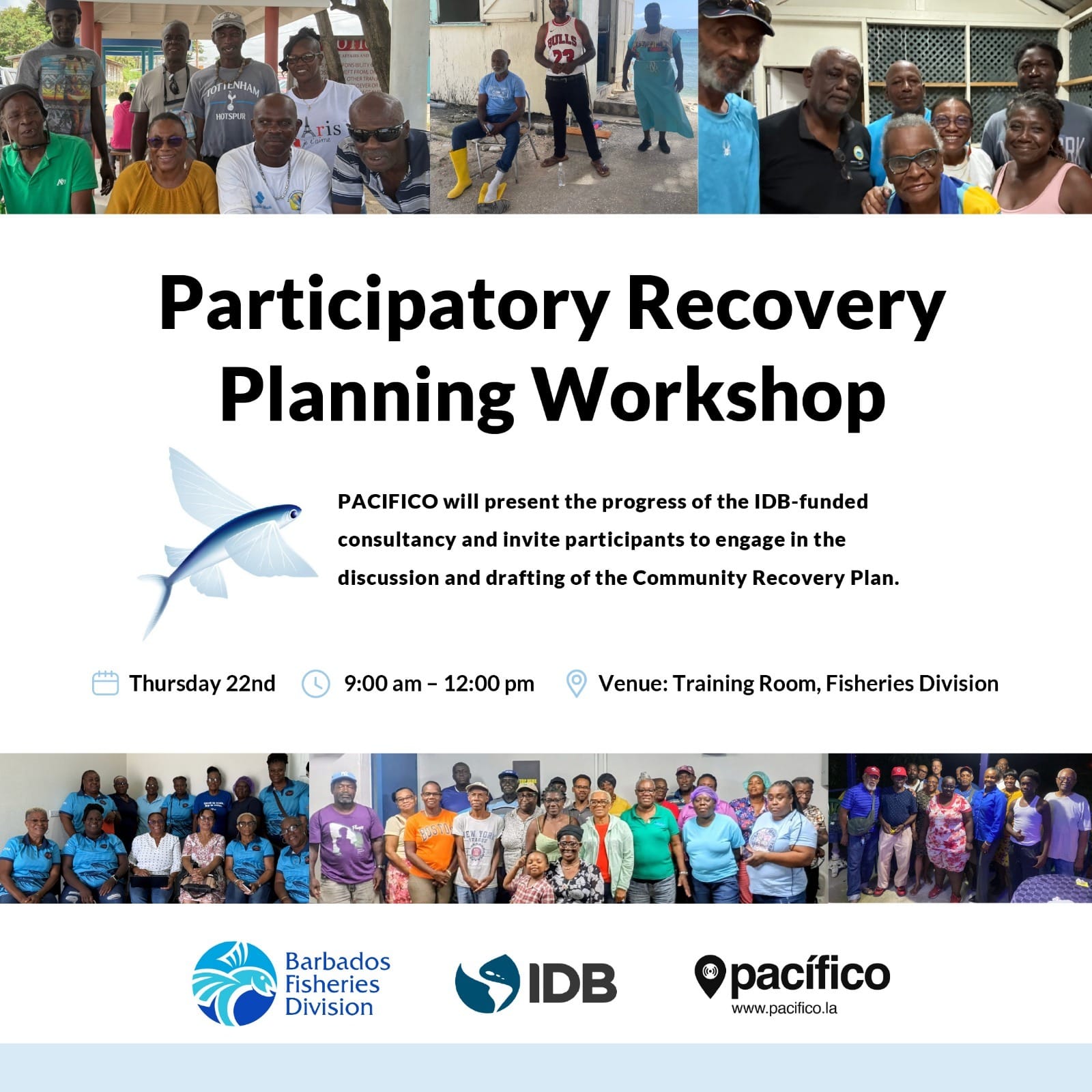 Consequently, PACIFICO, the Inter-American Development Bank (IDB), and the Barbados Fisheries Division collaborated to host a Participatory Recovery Planning Workshop on the 22nd of January, 2026 in order to share the results of the surveys conducted and engage representatives from the different landing sites to discuss the next phase of work and priorities for recovery.