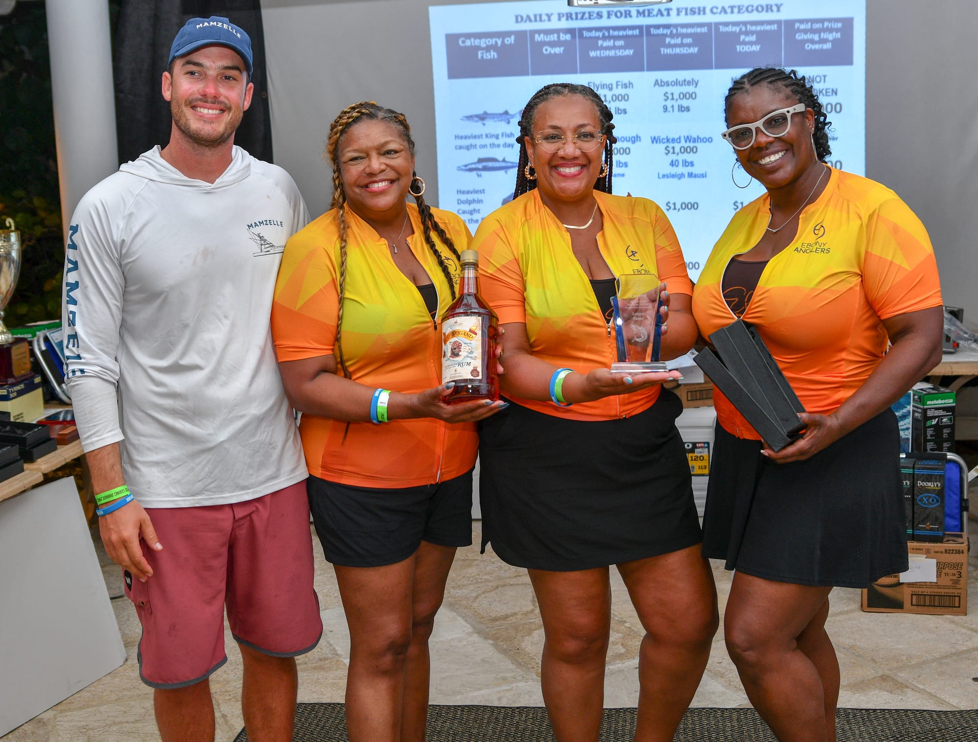 Of the meat fish prizes, the Ebony Anglers, aboard the boat Wicked Wahoo, did the vessel's name justice as the team landed the heaviest Wahoo of the tournament at a whopping 40 lbs! Lesleigh Mausi, with the support of her team, was able to reel in this fish for the well-deserved 1st prize. The largest Wahoo of Day 3, at 18 lbs, was caught by Never Enough, and the heaviest dolphin of the tournament was landed by Legacy at 22.7 lbs.