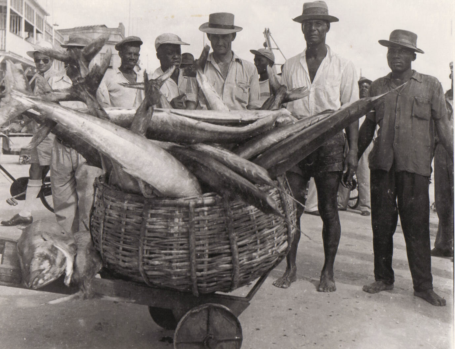 By the end of 1949, two other critical steps in the fisheries revolution were in place…the establishment of the Fisheries Experimental Station at Reef Road, and the launch of the first local motor-powered fishing vessel and the Division’s Research Vessel, the Investigator. The pivotal research conducted by the Fisheries Division, particularly from the Investigator, among other things, directly resulted in the introduction of gillnets to the flyingfish fishery (in 1951) and wire fishing lines to improve the catch rate of large pelagic species such as kingfish (Figure 1), which often bit through the natural fiber lines used at the time. The introduction of these fishing gears greatly improved fish catches. For example, in just two years after introduction, the entire local flyingfish fleet was using flyingfish gillnets, resulting in a 60% increase in landings of this keystone species.