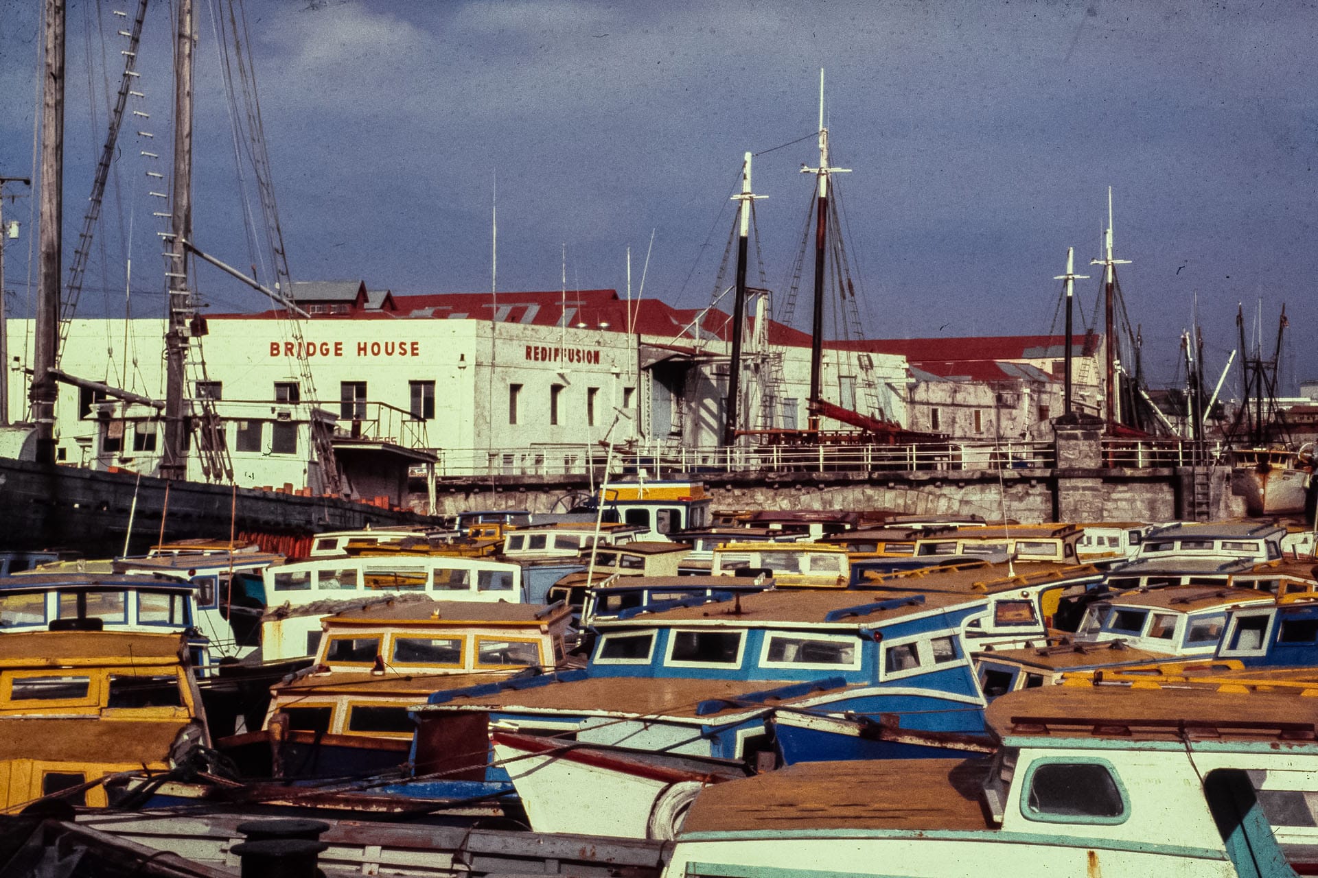 Ironically, the increased efficiency of the fleet became the fishers’ worst enemy as the larger fish catches increased sales competition at the markets and increased the frequency of market gluts. The solution to this dilemma was cold storage of the catches to stabilize the market. By 1957 a private enterprise, the Blue Line Fishing Co., operated the island’s lone fish processing plant, which included a small cold storage facility at Sherman’s St. Peter. However, a government operated facility for the use of the general national fishing fleet was needed.