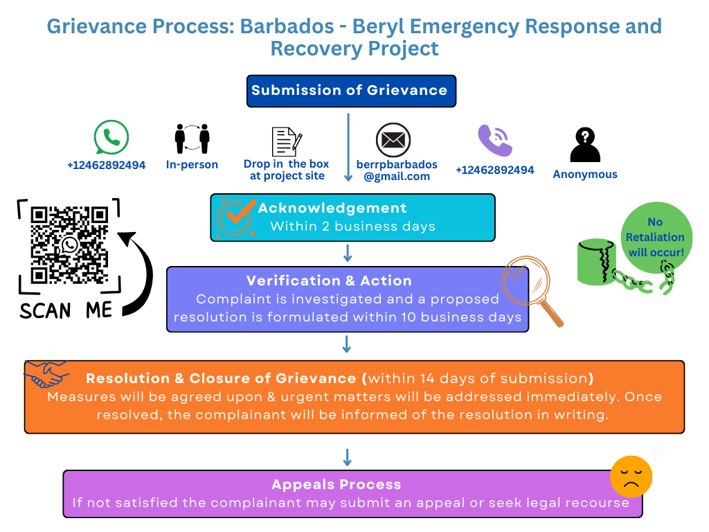 - Additionally, the World Bank also has a Grievance Process and Mechanism which you can utilise directly in relation to the Beryl Barbados Project. Please follow this link to access and for more information: https://projects.worldbank.org/en/projects-operations/products-and-services/grievance-redress-service